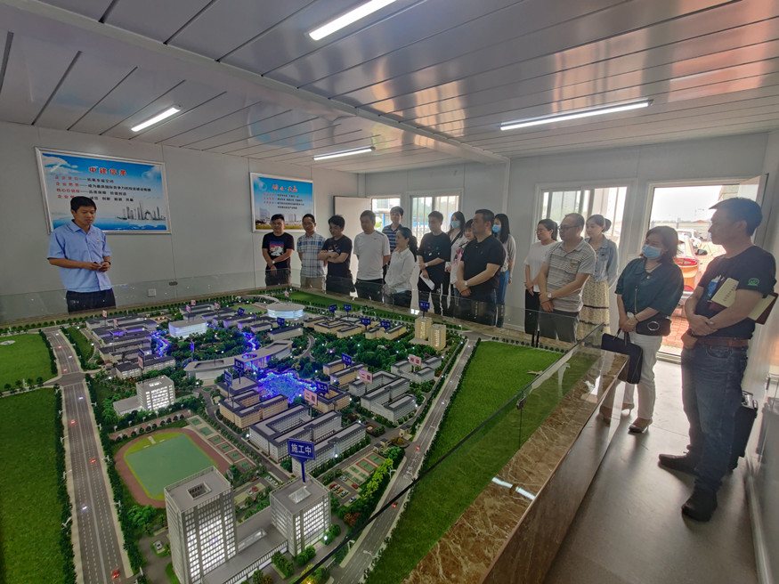 活動前,建設(shè)公司一行在中建七局湖北工程職院新校區(qū)項目黨支部書記李曉龍的帶領(lǐng)下觀摩了項目沙盤室,詳細(xì)了解了湖北工程職院新校區(qū)項目進展情況。