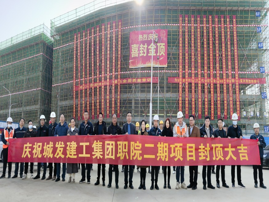 2023年1月9日上午,在湖北工程職業(yè)學(xué)院新校區(qū)(二期)生活區(qū)宿舍樓項目現(xiàn)場舉行主體結(jié)構(gòu)封頂儀式。城發(fā)建工集團黨總支書記、董事長潘明亮,城發(fā)建工集團黨總支委員、副總經(jīng)理洪登峰出席活動,城發(fā)建設(shè)公司、城發(fā)渣土公司、城發(fā)商砼公司相關(guān)負責(zé)同志,施工單位、監(jiān)理單位、咨詢設(shè)計單位等參建各方代表參加項目主體結(jié)構(gòu)封頂儀式。
